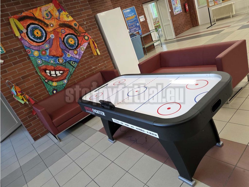 Objavte vzrušenie zo vzdušného hokeja s hrou Air Hockey SpeedFighter, ktorá ponúka hodiny zábavy a tréningu rýchlosti, reakcie a koncentrácie. Vďaka zaobleným profilom bez ostrých hrán a stabilným, zakriveným, protišmykovým nohám je tento stôl ideálny na domáce použitie a do mládežníckych centier.