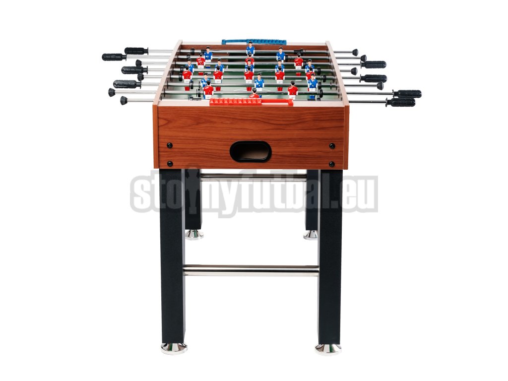 Hracia plocha (104x58 cm) je vyrobená z MDF dosky. Figúrky stolného futbalu a tyče sa dajú v prípade potreby vymeniť samostatne a konce tyčí sú vybavené bezpečnostnými koncovkami. Prišroubované figúrky hráčov sú tlmené smerom k stene karosérie dištančnými podložkami a brankár sa voľne otáča o 360°. Lopty sa dajú ľahko vybrať z oboch koncov a komfort hry zvyšujú otvory na vhadzovanie na oboch stranách futbalu.