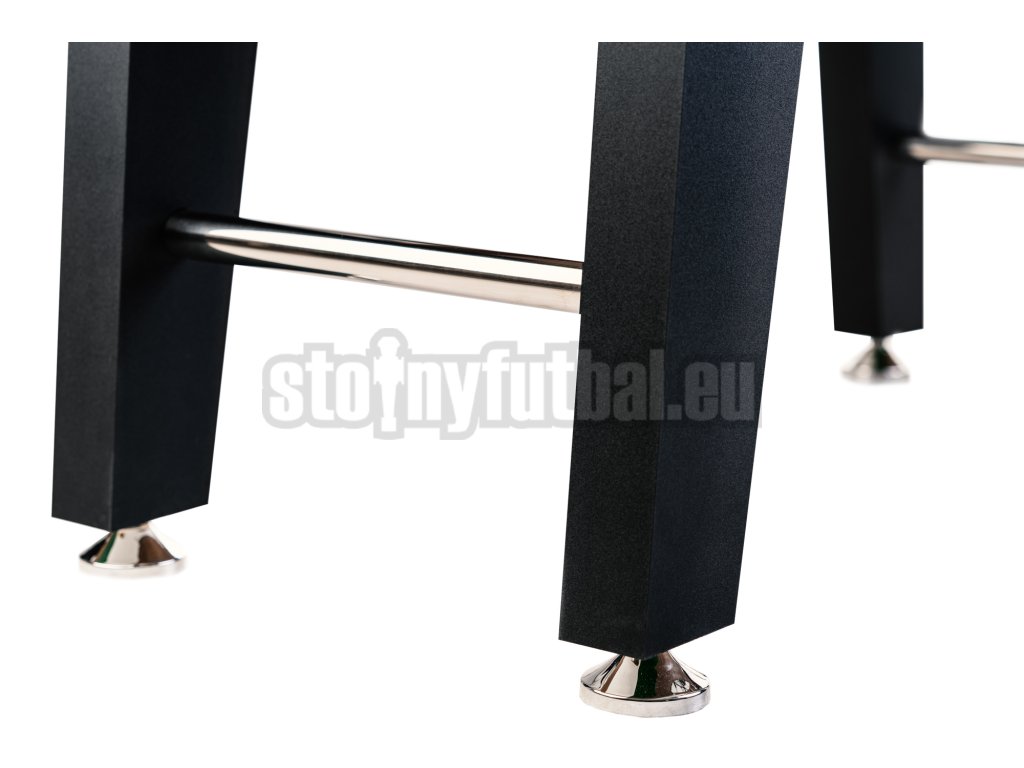 Extrémne stabilné nohy stola majú pochrómované nastaviteľné nivelačné " nohy", takže stolný futbal sa dá dokonale nastaviť aj na nerovnej podlahe.