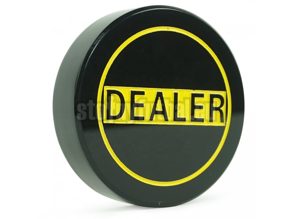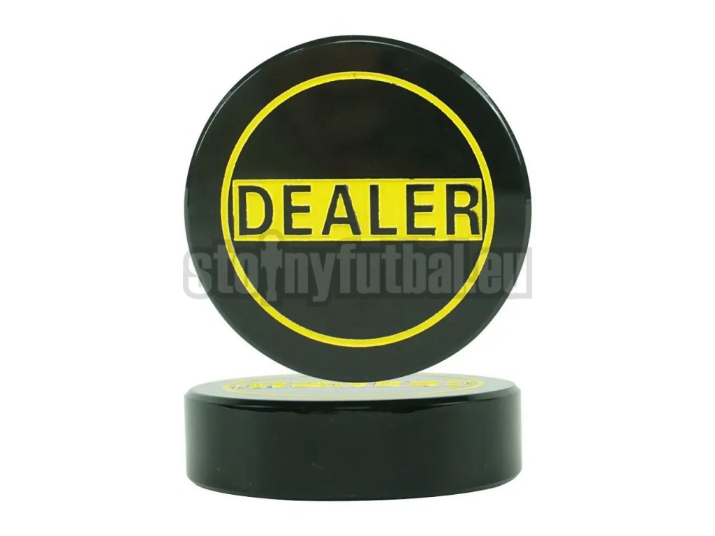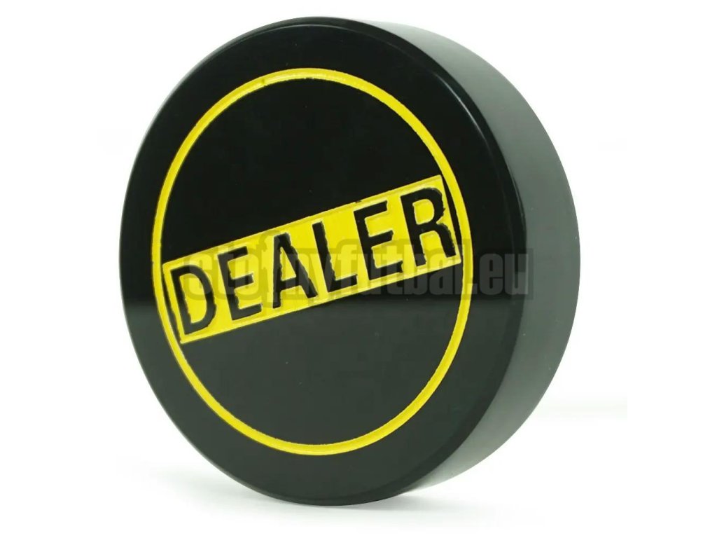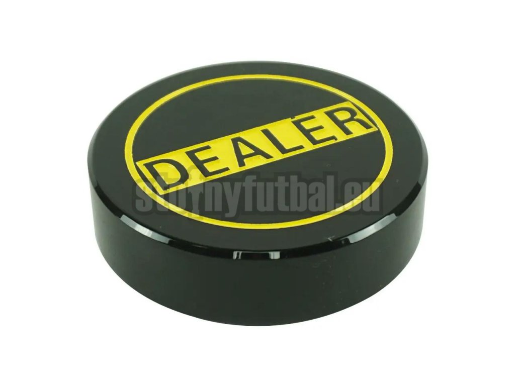 Veľmi kvalitný, veľký dealerský Button Black-Crystal. Text viditeľný z oboch strán. Žetón sa používa na označenie DEALER hráča.