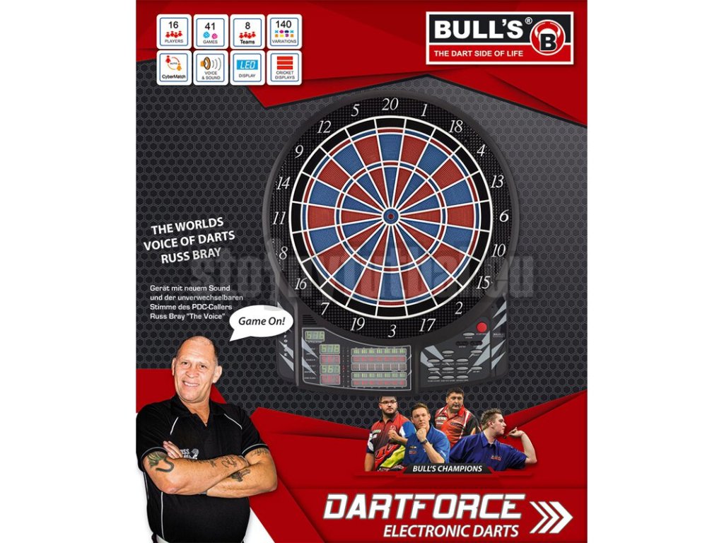 - Elektronický šípkový terč nahovorený hlasom "The Voice" od Russ Bray. Russ Bray je anglický šípkový rozhodca, ktorý pracuje pre Professional Darts Corporation. Je tiež známy ako „The Voice“ vďaka svojmu jedinečnému štýlu volania a jeho krikľavému hlasu.