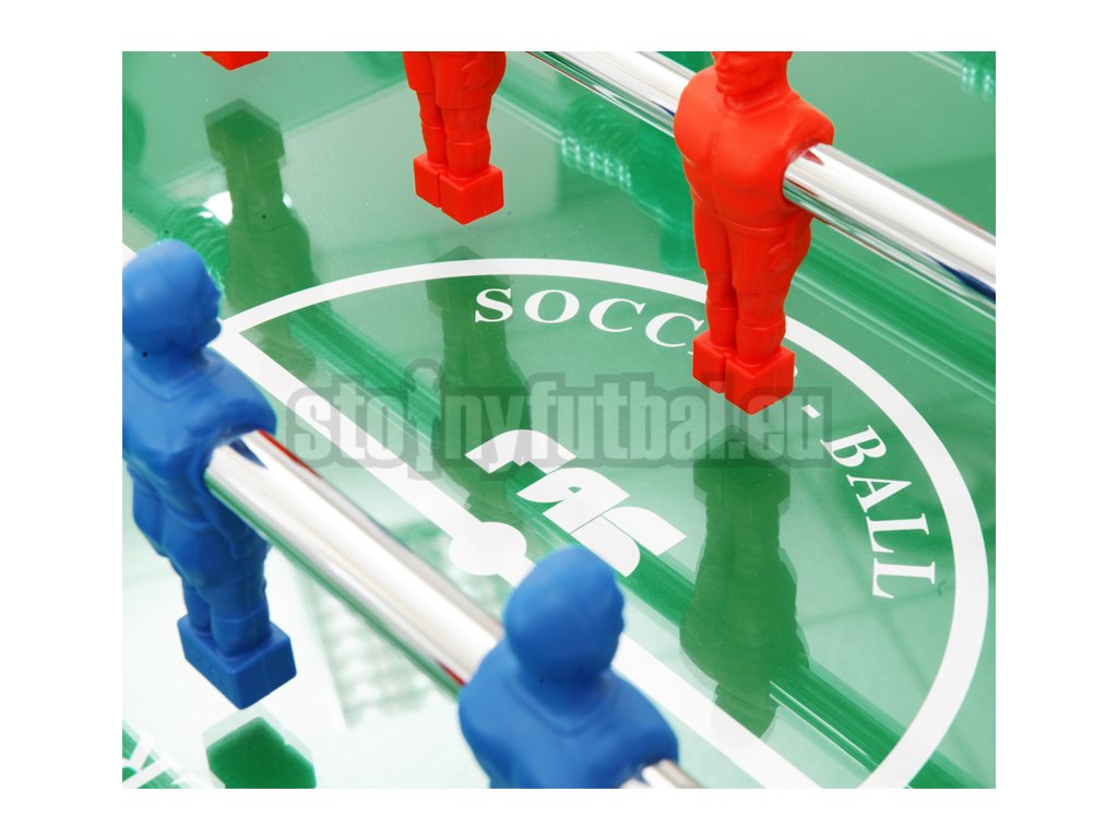 Hracia plocha profesionálnych rozmerov 114,5 x 70 cm je zakrytá tvrdeným sklom o sile 5 mm.
