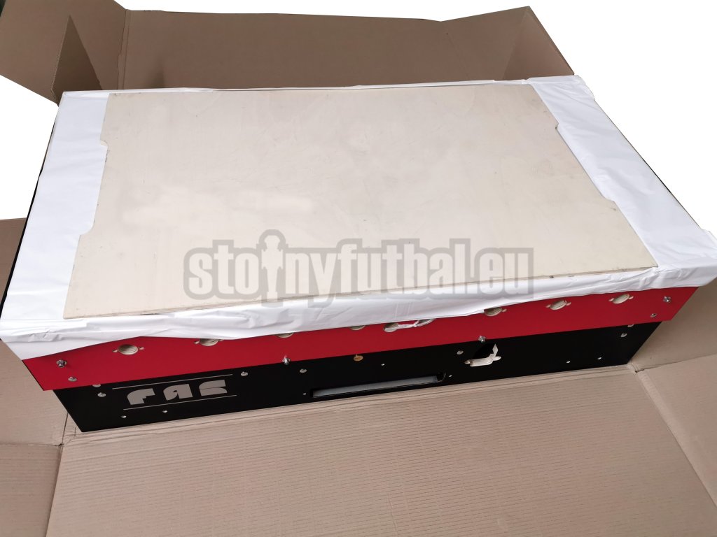 Každý stolný futbal je zabalený samostatne do vlnitej lepenky s hrúbkou 6 mm, ktoré je stiahnuté pásky a vnútri precízne zabezpečený futbal tak, aby nedošlo k poškodeniu výrobku.
