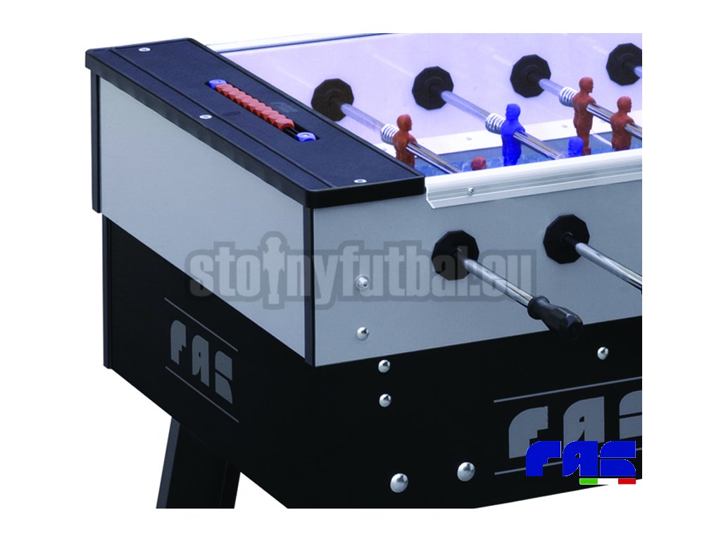 Celý stolný futbal je uzavretý tvrdenou sklenenou doskou o sile 5 mm, ktorá chráni celkovú hraciu plochu pred odcudzením loptičiek čomu tiež napomáha podávač loptičiek.