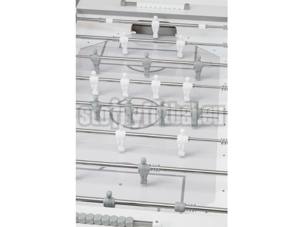 - Dlhá hracia plocha z tvrdeného antireflexného skla. Bielej a šedej linky hracej plochy stolného futbalu PURE WHITE zvýši celkový elegantný dojem.