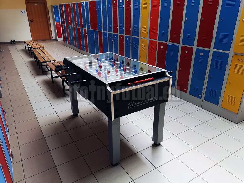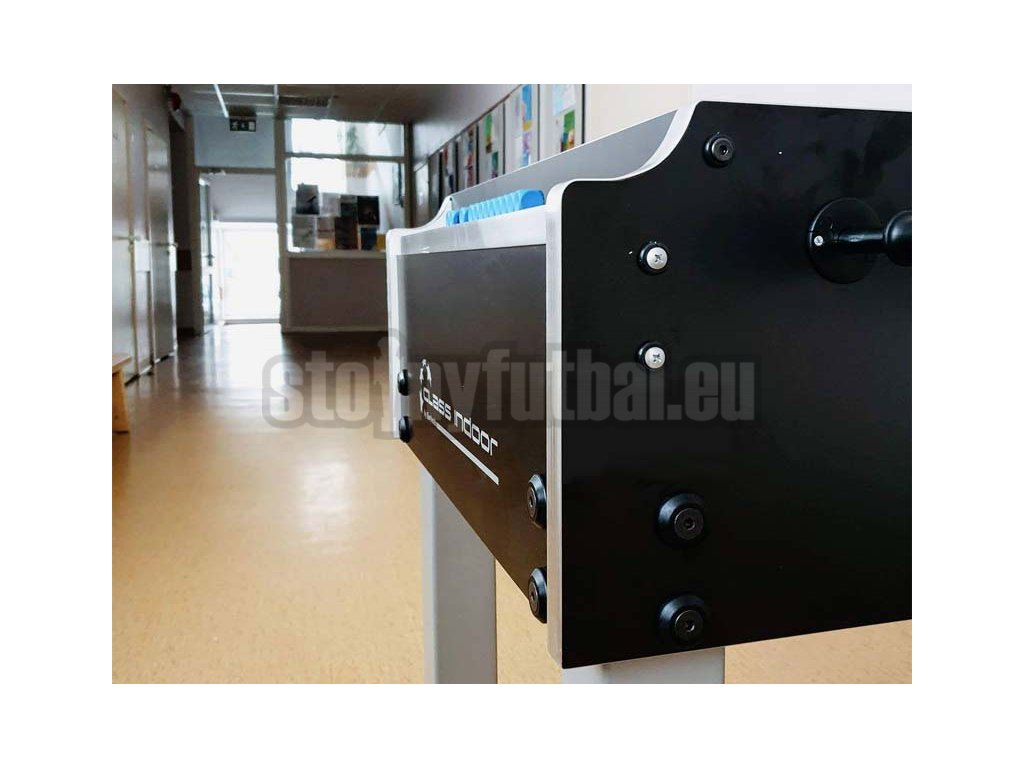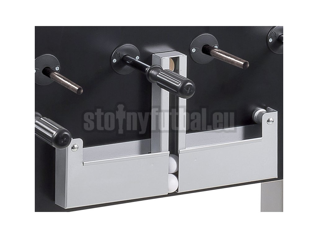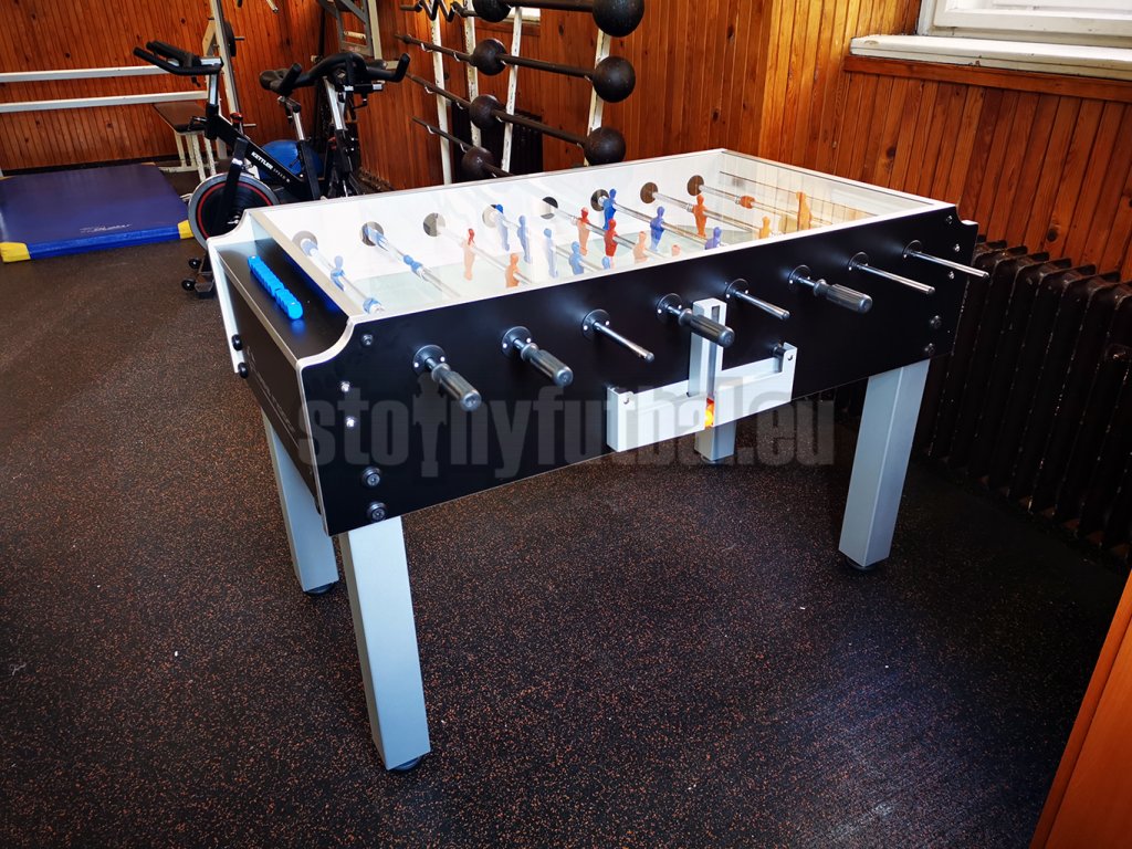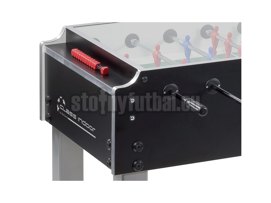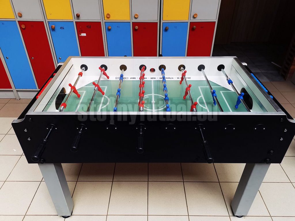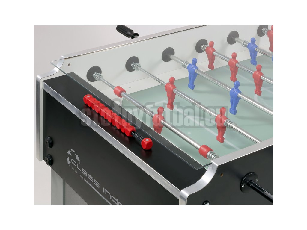 - Hracia plocha zakrytá tvrdeným sklom proti možnému odcudzeniu loptičiek a vhazování nečistôt a predmetov do stolného futbalu, bránkovisku pod.