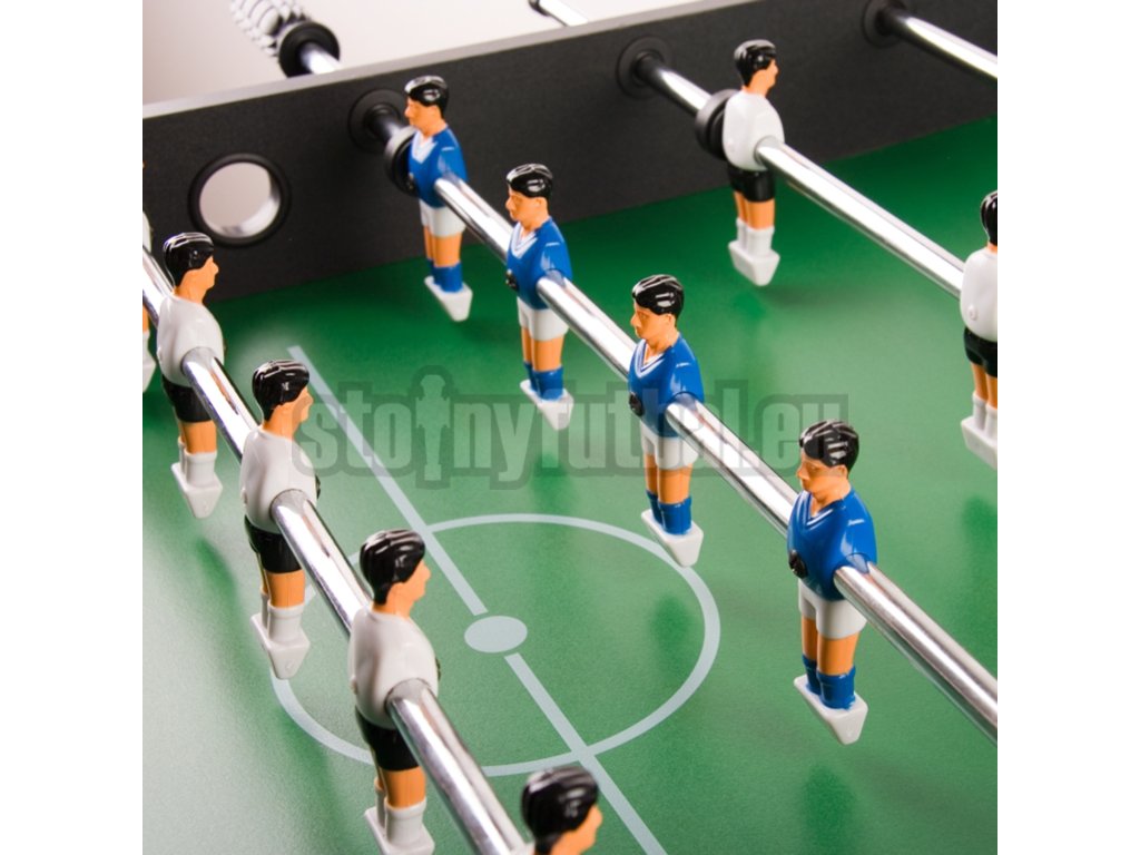 Stolný futbal ideálny pre začiatočníkov, najmä deti. Nohy sú výškovo nastaviteľné. Korpus futbalu vyrobený z MDF dosky hrúbky 15mm. ideálne do klubovne, domov alebo na chatu. Je vybavený držiakmi nápojov.