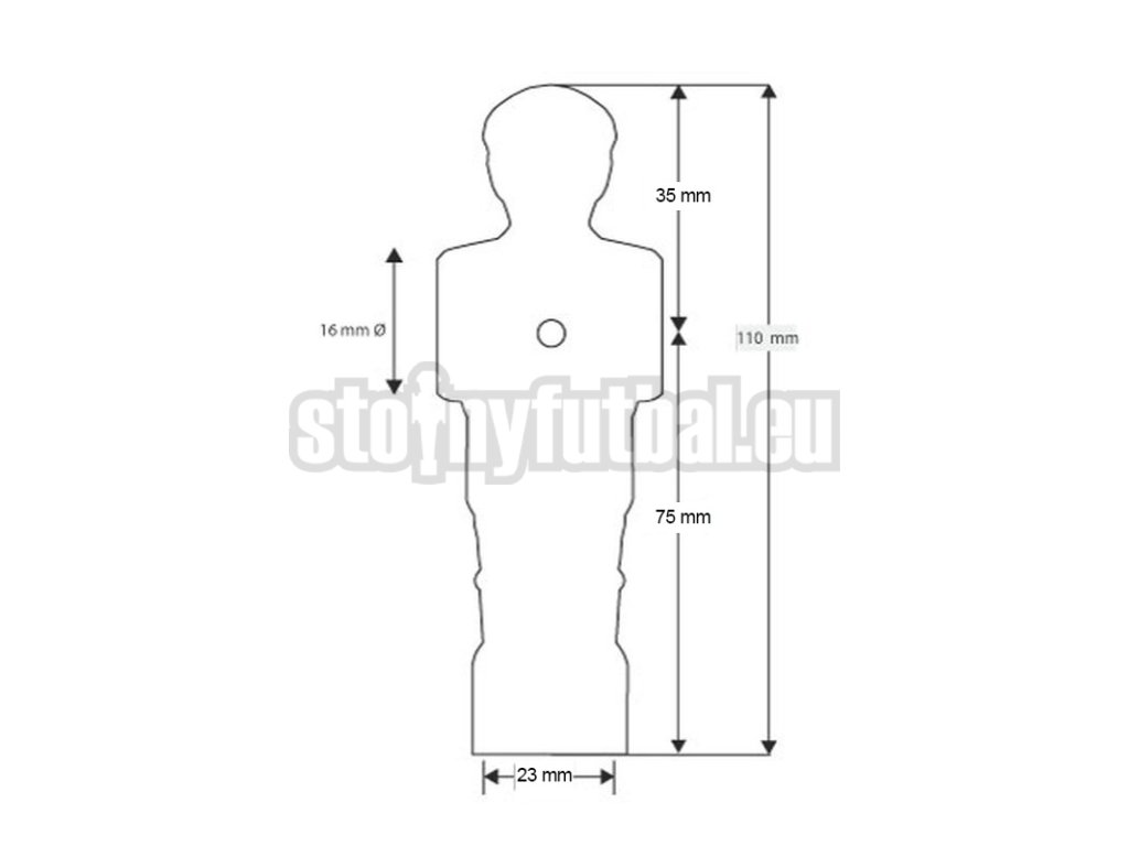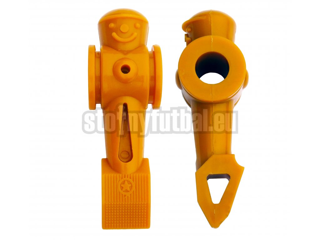 Žltý hráč s profesionálne "ostrou" kopačkou vhodný pre všetky tyče s priemerom 16 mm na fotbálcích s mincovníkom i stoloch pre nekomerčné použitie.