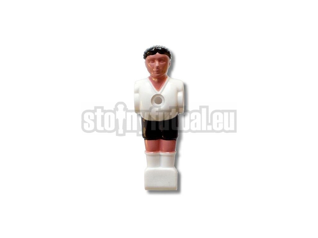 Biely plastový futbalový hráč pre stolný futbal na tyče s priemerom 16 mm a s otvorom na skrutku s priemerom 3 mm.