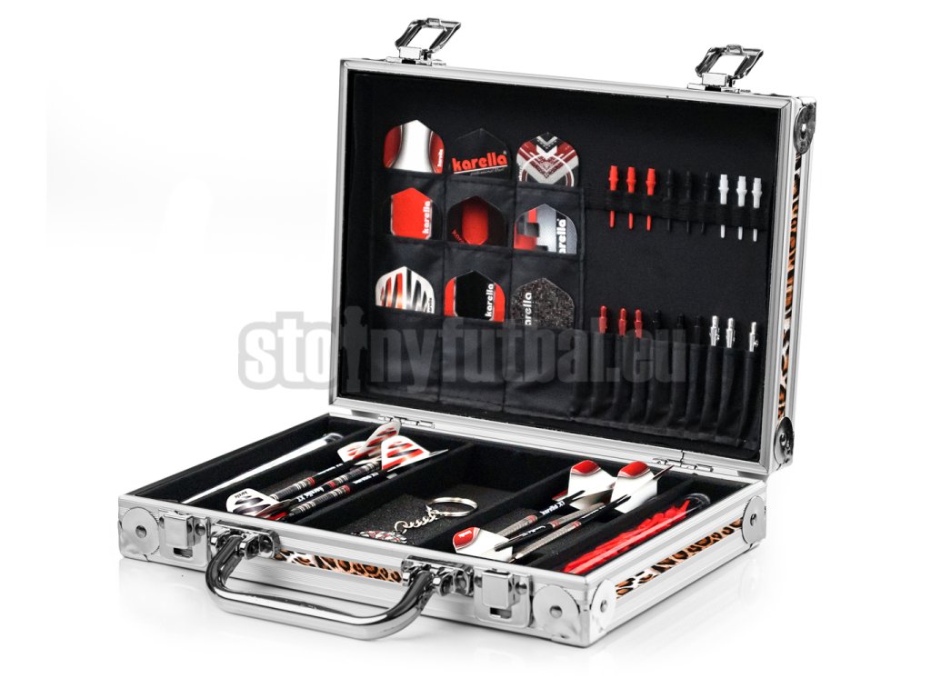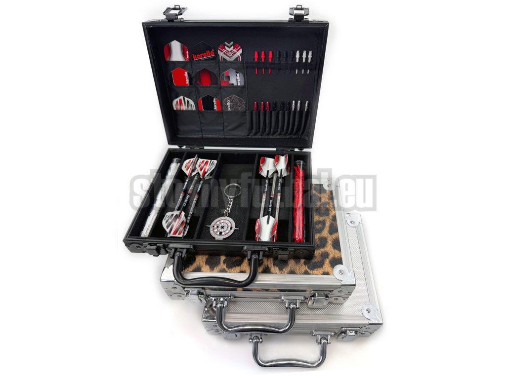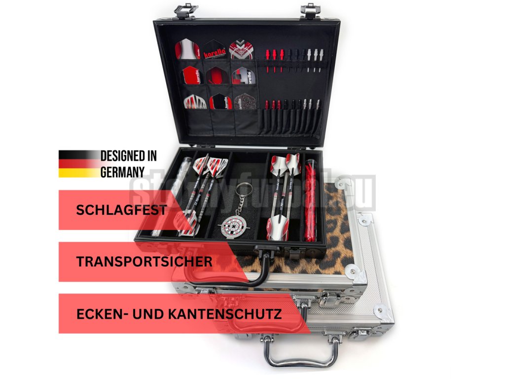 Luxusný kufrík na šípky Alu PAK Luxus v LEOPARD edícii je ideálnym riešením pre vášeň a precíznosť každého šípkara. Toto puzdro je vyrobené z nárazuvzdorného hliníka, čo zabezpečuje maximálnu ochranu vašich šípok a príslušenstva počas skladovania a prepravy.