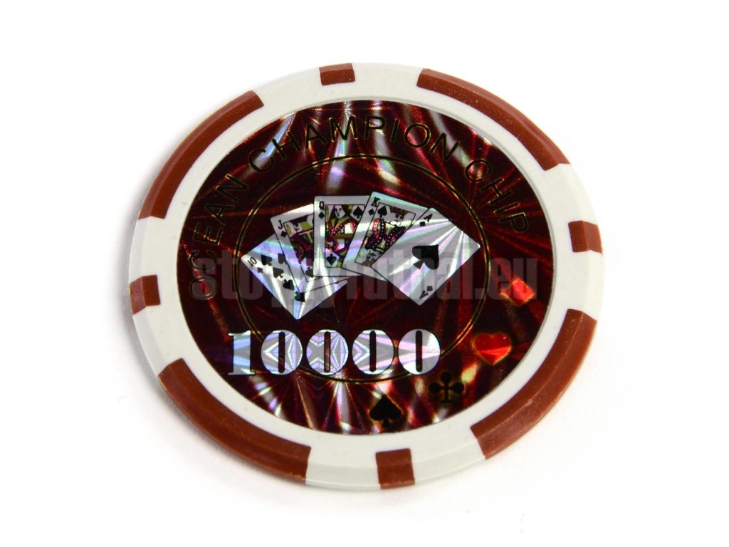 50 ks poker žetónov v hodnote 10 000 o váhe 11g s kovovým jadrom a skosenými hranami - ideálny na triky so žetónmi.