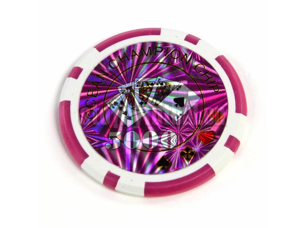 Ružové luxusné žetóny na poker Ocean majú holografický povrch a kovové jadro.