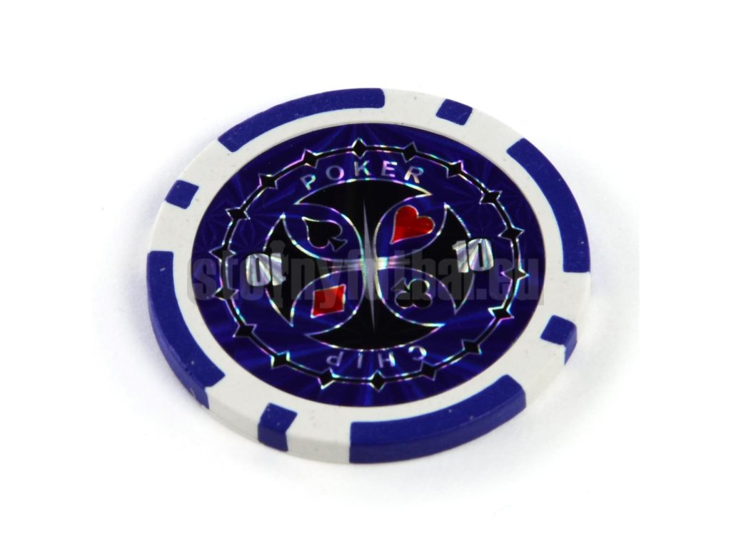 Modré luxusné žetóny na poker Ultimate majú holografický povrch a kovové jadro.