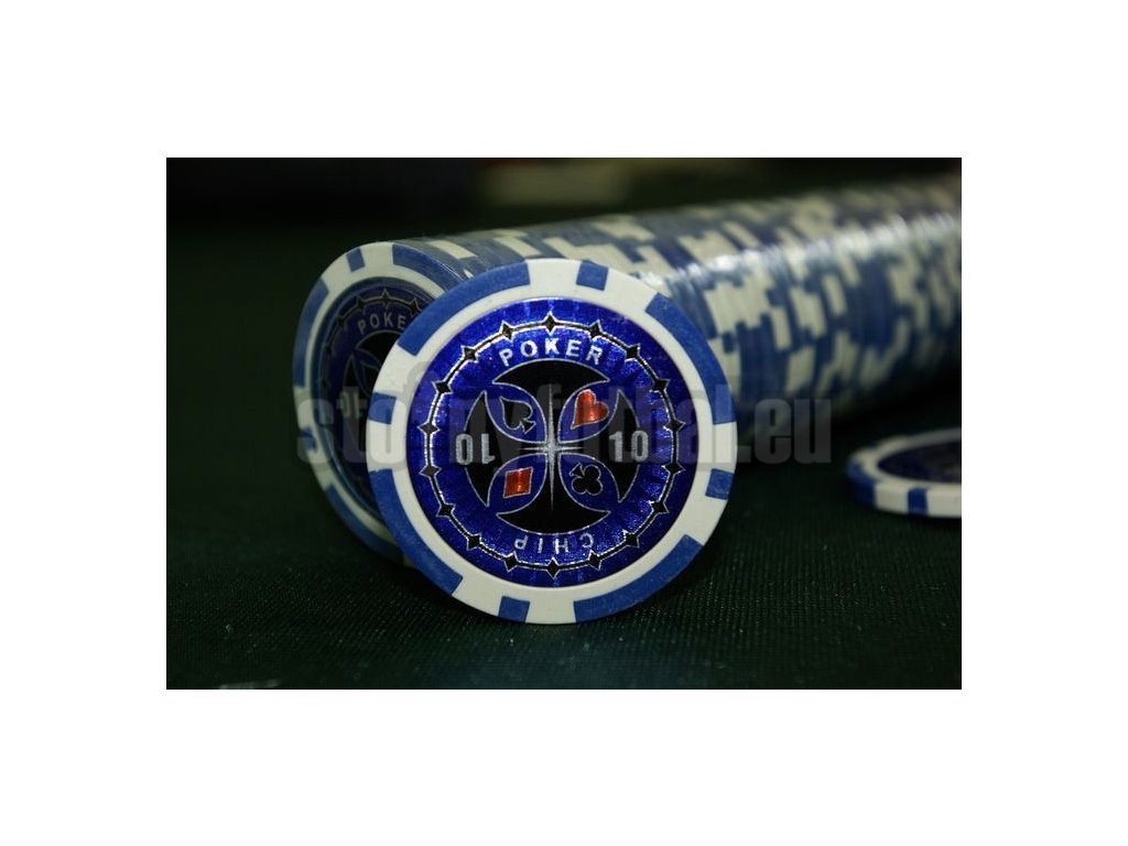 50 ks poker žetónov v hodnote 10 o váhe 12g s kovovým jadrom.