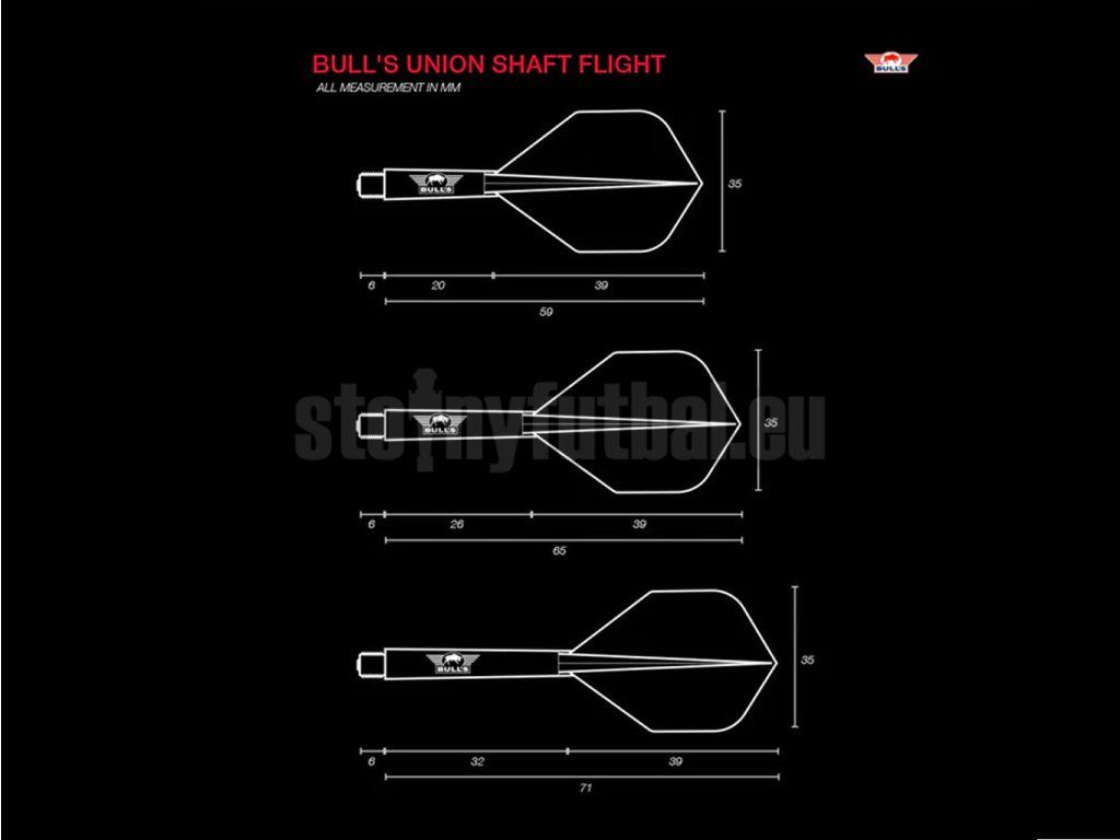 Letka Bull's Union Moulded Shaft Flight je navrhnutá tak, aby pomohla hráčom všetkých úrovní – od rekreačných nadšencov až po skúsených hráčov šípok. Spojenie šípky a letky do jedného celku minimalizuje pohyb jednotlivých častí, zvyšuje pevnosť a prispieva k konzistentnejšiemu letu šípky.