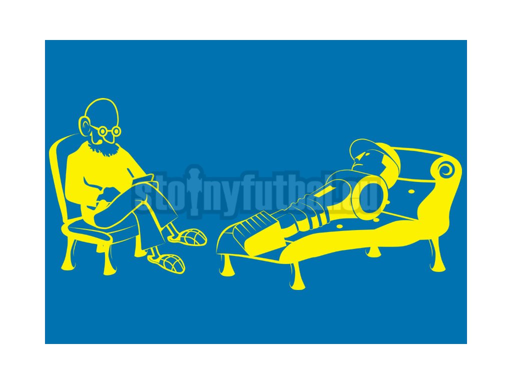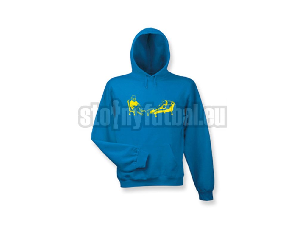 Pohodlná mikina s motívom futbalového panáčika na návšteve u psychoterapeuta.