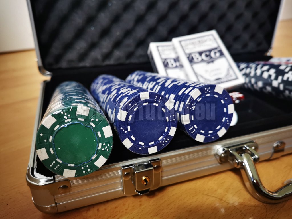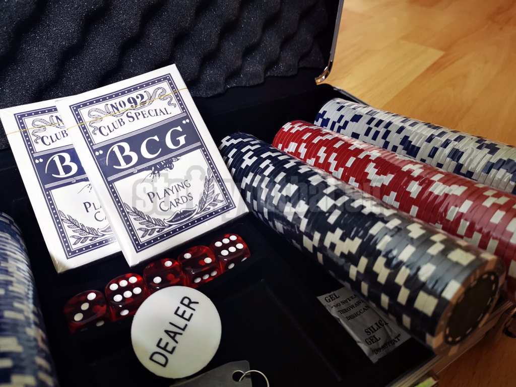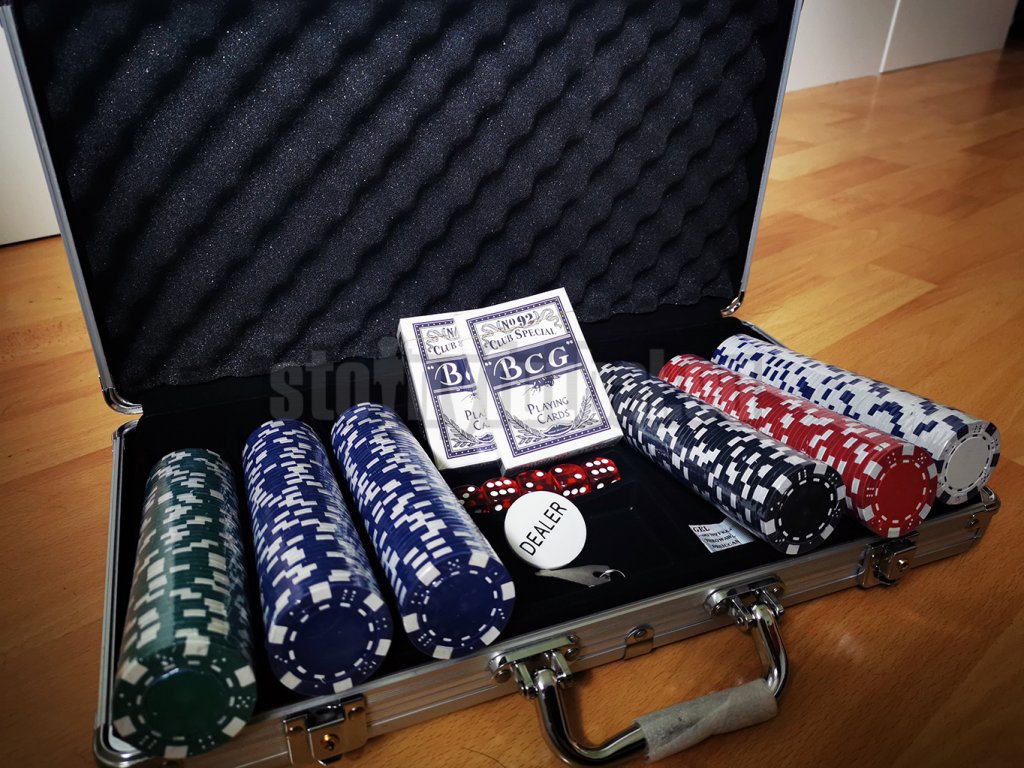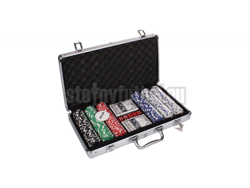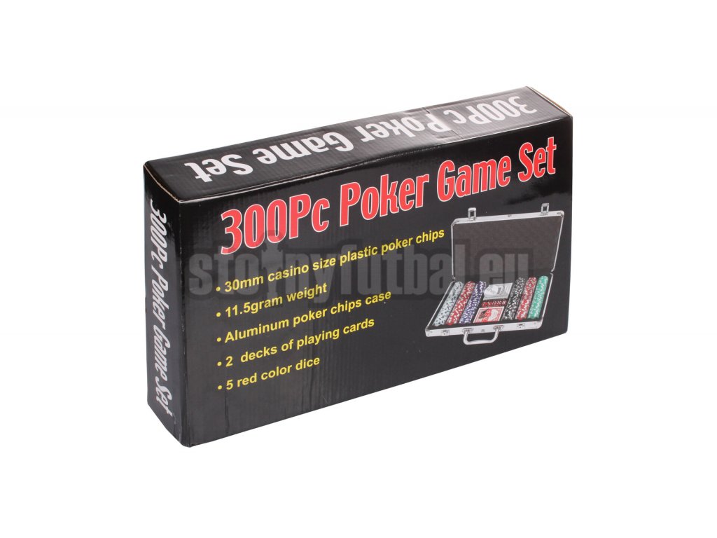 - 300 štandardných pokerových žetónov s hmotnosťou 11,5 g a priemerom 40 mm