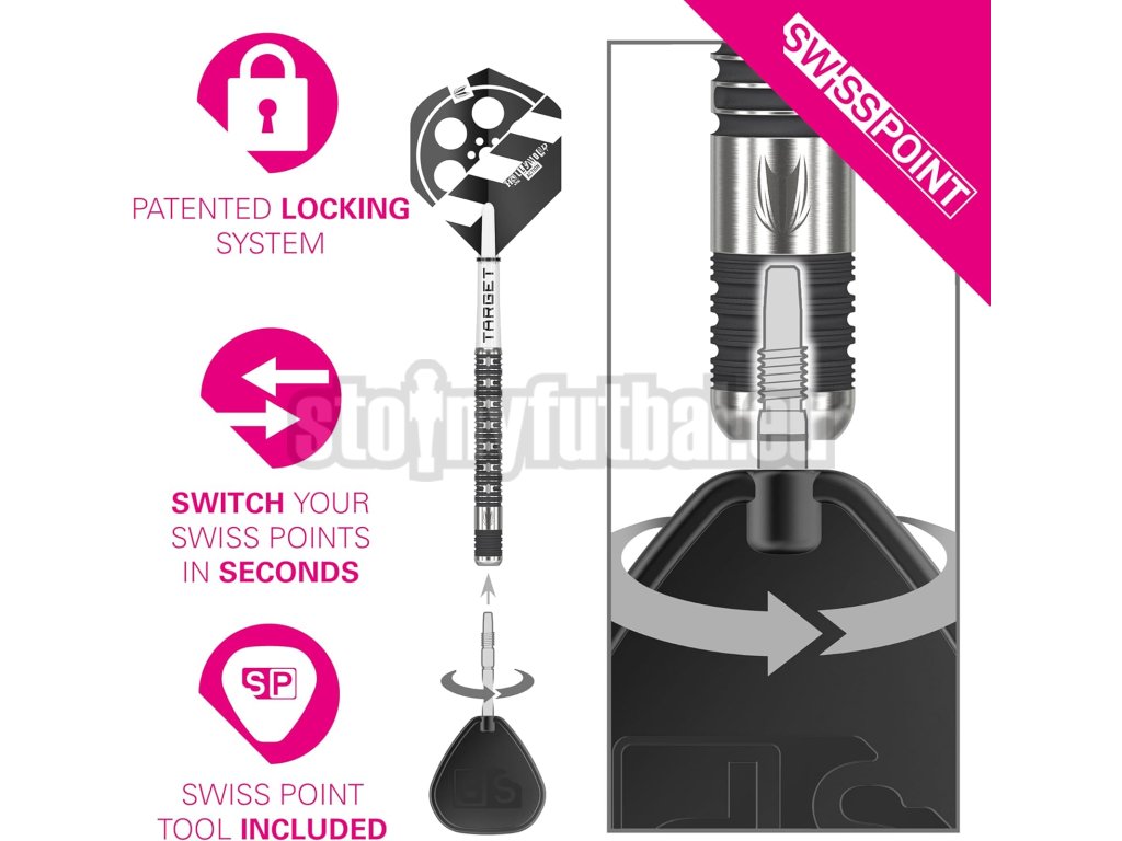 Vitajte v sekcii Target Darts, kde nájdete najkvalitnejšie šípky a príslušenstvo pre všetky úrovne hráčov. Target Darts je renomovaná značka známa svojimi inovatívnymi výrobkami, ktoré kombinujú precízne spracovanie s moderným dizajnom. Od robustných volfrámových šípok až po elegantné súpravy šípok je každý výrobok navrhnutý tak, aby vám poskytol čo najlepší zážitok z hry.