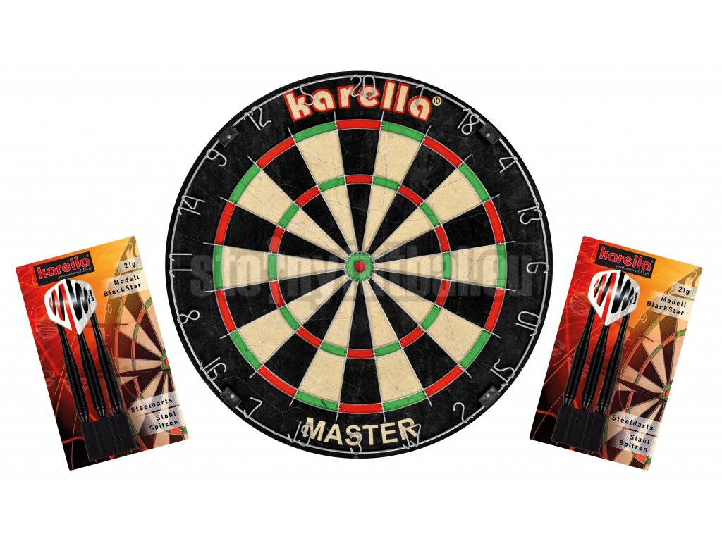 Sisalový šípkový terč Karella MASTER + 2 sety šípok Karella BlackStar 21 gr.