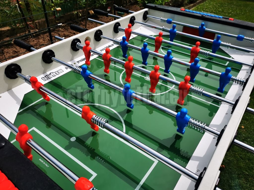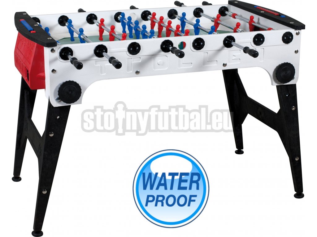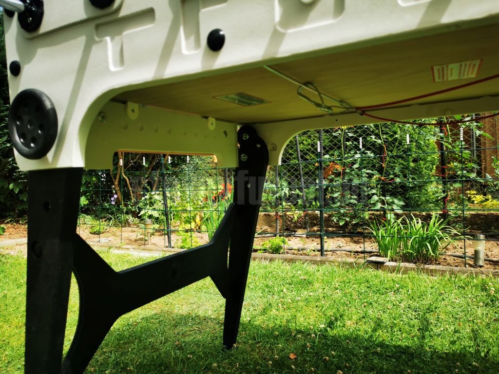 Telo stola s hrúbkou 16 mm, odolné proti poveternostným vplyvom, bolo skonštruované s inovatívnymi termoplastická syntetická živica a výstuhami zo sklenených vlákien, ktoré zaisťujú vynikajúcu pevnosť a odolnosť stolného futbalu.
