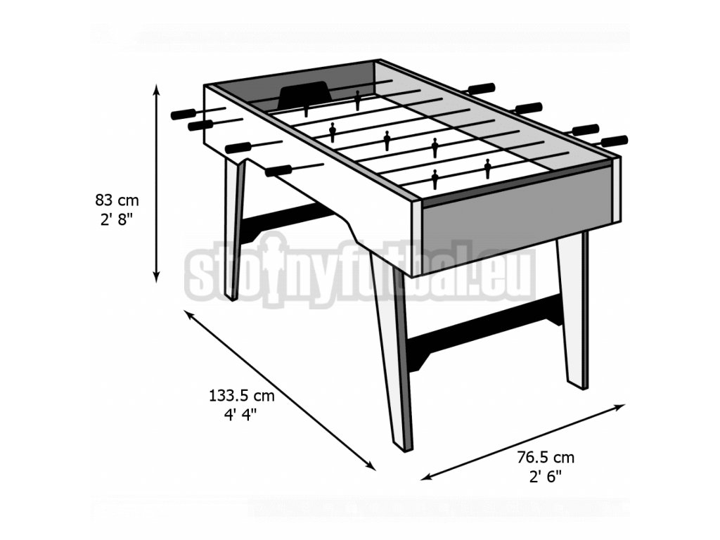 Konštrukcia nôh futbalu je klasicky skosená pre vyššiu stabilitu pri hre a výškovo nastaviteľná až o maximálne 6,0 cm (vyrovnanie úrovne podlahy). Priečne vzpery zvyšujú stabilitu a dodávajú stolovému futbalu potrebnú robustnosť.